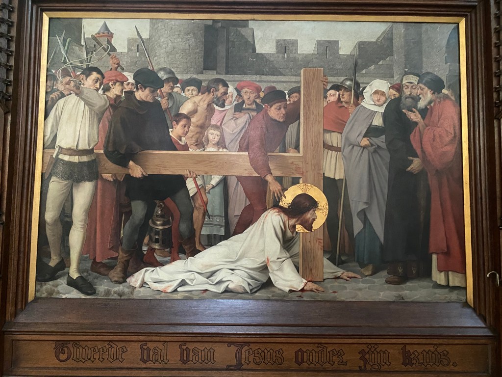 De Kruisweg in Sint-Salvator is meer dan alleen een reeks schilderijen; het is een emotionele reis door het lijden van Christus, meesterlijk vastgelegd door Théophile Lybaert. Kortom, dit is geen gewone kruisweg.